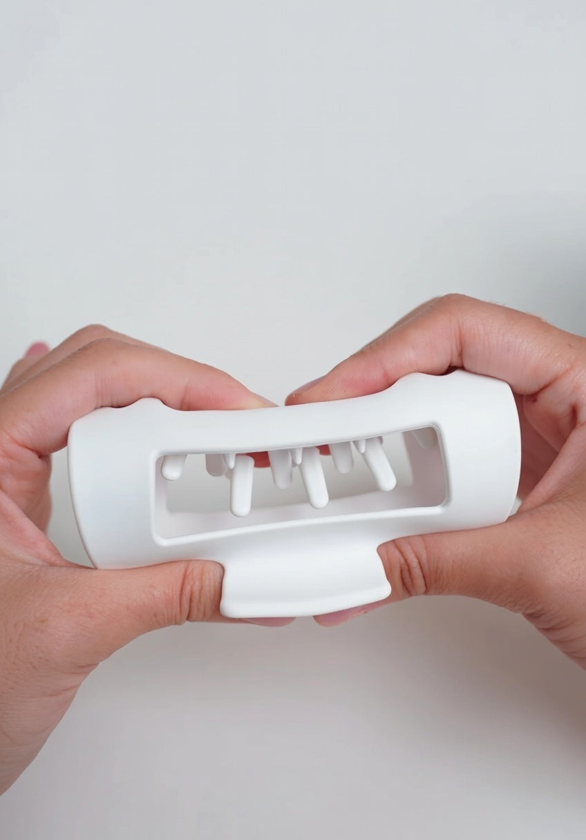 Inward-Curving Teeth: Prevents scalp digging by directing the pressure from the prongs towards the body rather than your head.